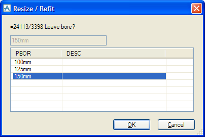 In case specification search is used, the Bore size dialogue will contain a dropdown list where valid boresizes can be selected. In case the user will key in a bore size, this will automatically be rounded off to the nearest valid bore size.