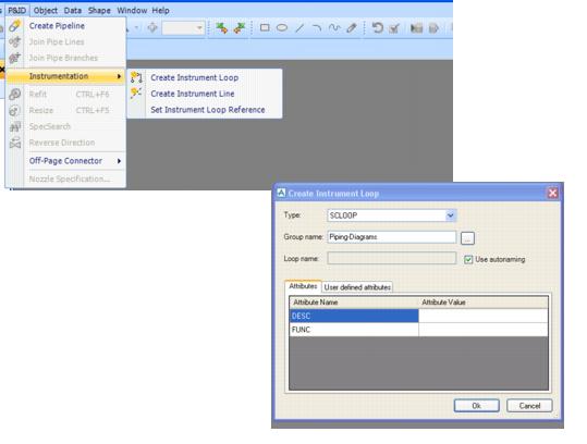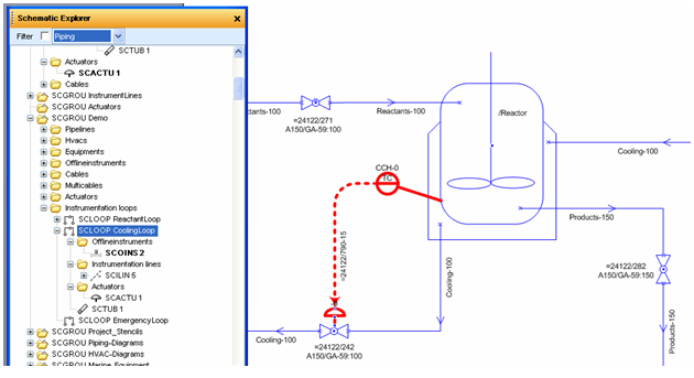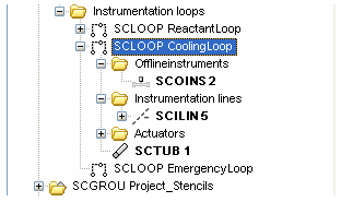 If a high level of detail is desired, it will be possible to model instrument lines in the same way as the main flow, using branches, tubes, valves and off-page connectors. All discrete components as well as structural elements will have the capacity to refer to a SCLOOP by SCLORE attribute, and thus, be a member in instrument loop hierarchies.