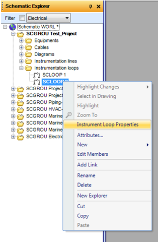 All elements that are members of a schematic loop can be easily found and selected on the drawing. You can use one of the options from the context menu,