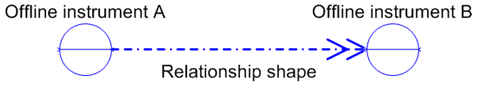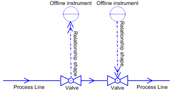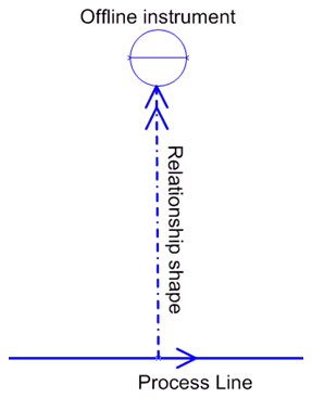 It is possible to use a relationship shape to connect an Offline instrument or Actuator to any valid item. The connection point will be created automatically on the shape if connection is at all possible, therefore it is not necessary to create any additional points on a shape that should be connected, before using the shape.