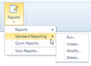 Visio reports: This is the standard MS Visio report function and can be used to create reports based on diagram document data. Please refer to the MS Visio documentation for more information. This command is available in the Tools Tab > Reporting > Visio Reports menu.