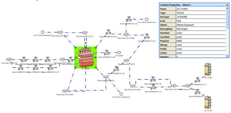 The Schematic Model Viewer allows users to view the contents of the schematic model database independently of diagram layouts. It provides a continuous navigable view of equipment items and the interconnecting networks, independently of which system they belong to or which P&ID they have been drafted on.