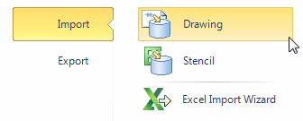 The Project Tab > Import And Export > Import function can be used to open Visio drawings which are not created through the Diagrams application and are therefore not represented by index elements in the database. Likewise, to export an existing drawing or to save a newly created Visio drawing to a file without creating an index element in the database, the export function can be used.
