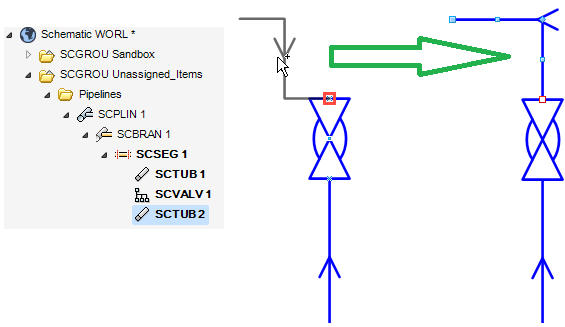 When connecting a shape to a branch, arrive and leave will be automatically adjusted to the flow direction. If the shape is a one-way component, then it will be rotated according to the flow.