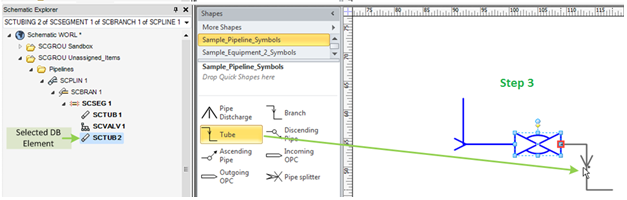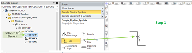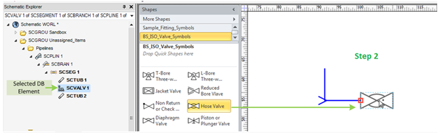 dropped on the shapes of the owning elements, for example a nozzle can only be dropped on an Equipment shape.