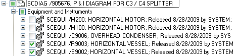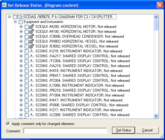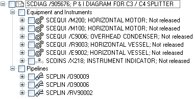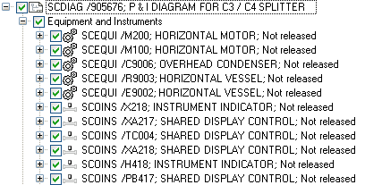 When an element is released, all its “child” elements (i.e. the elements beneath it in the database, such as the nozzles of an equipment item) are released as well. Such elements cannot be released independently of their parent elements.
