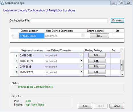 The Global Bindings window is displayed, on a new installation no configuration file will exist and so the first requirement is to browse to the folder as indicated by the Status field.
