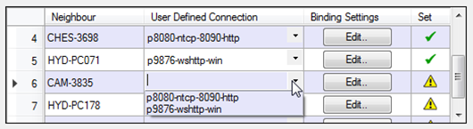 To change to another port and protocol, click in the User Defined Connection field and type in a connection name or reference.