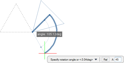 Press the down arrow key and select Base angle to rotate objects around a specified base angle. Refer to Rotate Objects around Base Angle for further information.