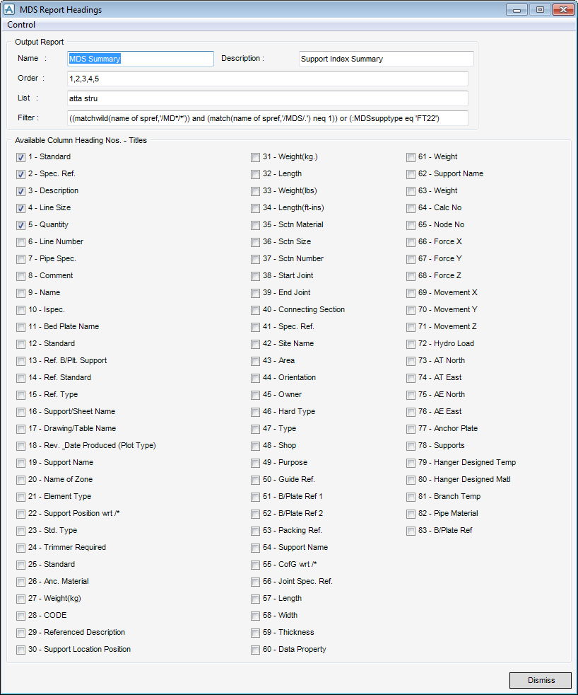 MDS Report Headings window.