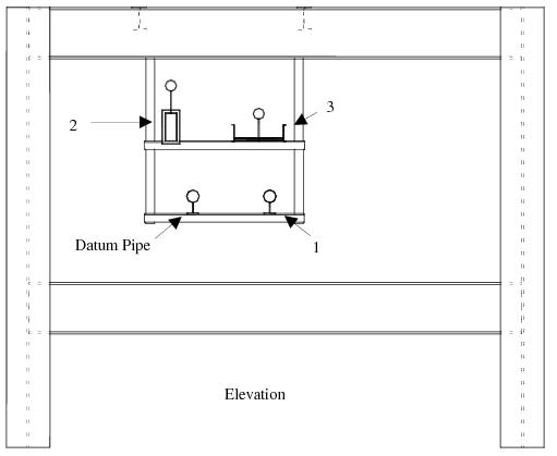 Select the horizontal steelwork member that is perpendicular to, and above, the pipes.