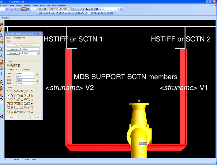 , and the user graphically identifies the main structural element(s) from which the MDS structure SCTN element(s) will be supported.