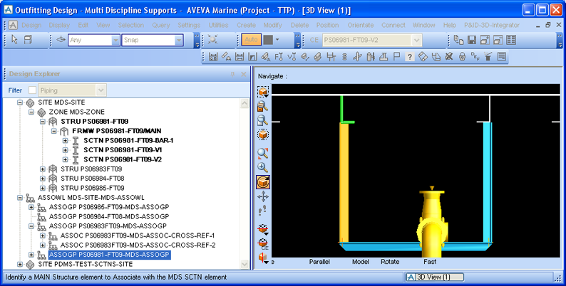 After selecting the MDS SCTN Association option a prompt will be displayed in the status bar, to 'Identify a MDS Support SCTN element to Associate', e.g.