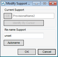 Type a name in to the Re-name Support text field, or click MDS Autoname to generate the name automatically. If the user clicks on Cancel, the name displayed in the Current Support field (ProvisionalName<n> is assigned by default.
