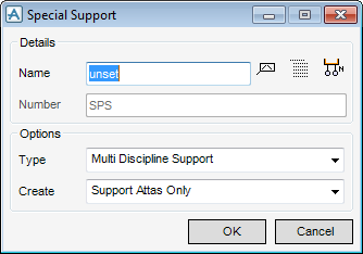 When a project requires a support that does not conform to any of the supplied configurations, it can be created as a Special Support. It can be assigned a support name and a special support number. This special support number can be unique to one support, or it may be used on several supports. This is controlled via the MDS Admin Data window. For details, refer to the MDS