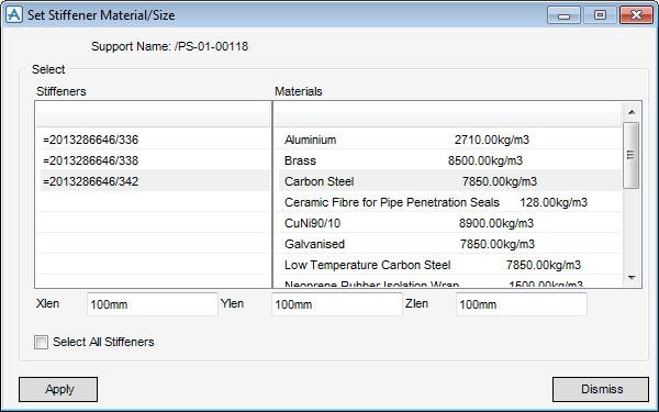 Select all the stiffener elements using the Select All Stiffeners check box or individually select them from the Materials list.