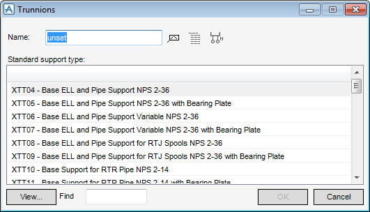 At any time when the Trunnions window is displayed, the user can click View to see the engineering drawing corresponding to the selected support.