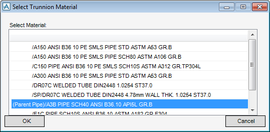 It is also possible to create just a trunnion branch (Create > Trunnion). This is a piece of tube (a new branch is created in the model), that can also have ancillaries associated with it (for example a u-bolt).