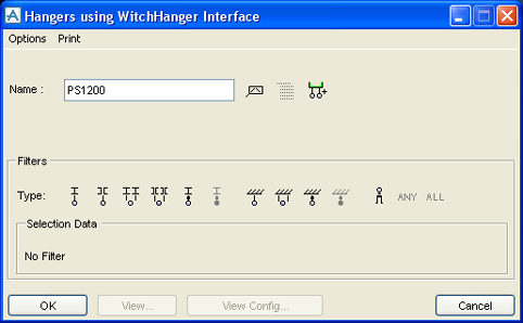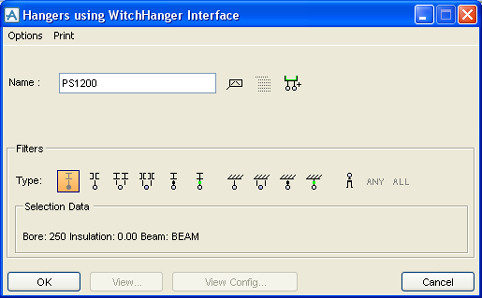 Click on the Filter Type icon for the type of hanger support which is required to be created. Filtering is described in Using the Filters. In this example select the first Filter Icon