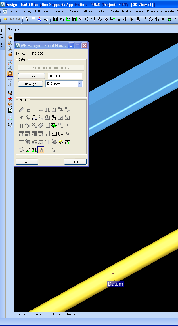Click OK. A dotted line is drawn in the graphical view between the pipe and the steelwork, and the MDS main hanger elements are created in the database. The window below is also displayed:
