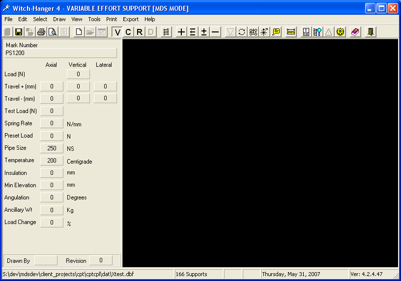 Click OK. The user is automatically taken into the Witch Hanger design software and the following window is displayed: