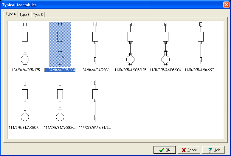 Click Typical Assemblies to display the types of variable hangers available for selection: