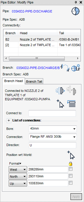 Pipe Editor: Modify Pipe window. To define the branch, refer to