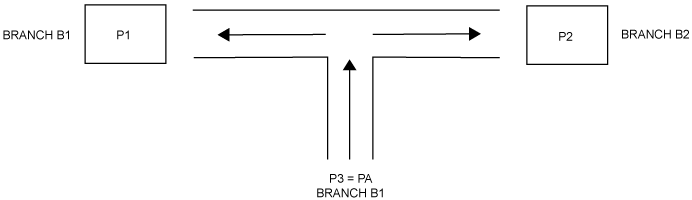 if the bores on the p-points are equal. It then checks the leave-bore and connect-bore. If the bores are equal then Pipe Router assumes that the Tee is T-shaped.
