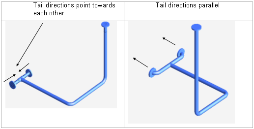 Tail direction: The TDIR attribute for a free tail is never set if the last constraint is a plane or a rack. In all other cases, TDIR is taken from the direction of the last component.