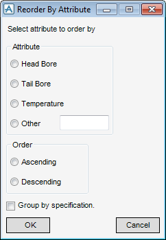 By Attribute - The user can reorder pipes according to particular attributes in ascending or descending order, using the Reorder by Attribute window.