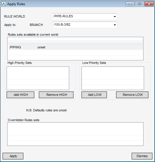 Refer to Automatic Pipe Route Administration for further information about creating the users own rules.