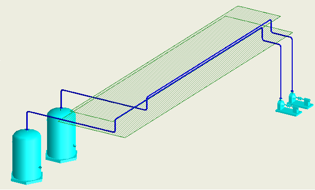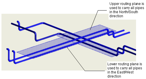 By default, Pipe Router runs pipes along Routing planes with the wall-to-wall Pipe Gap, with any rounding factor for the positioning, as given on the
