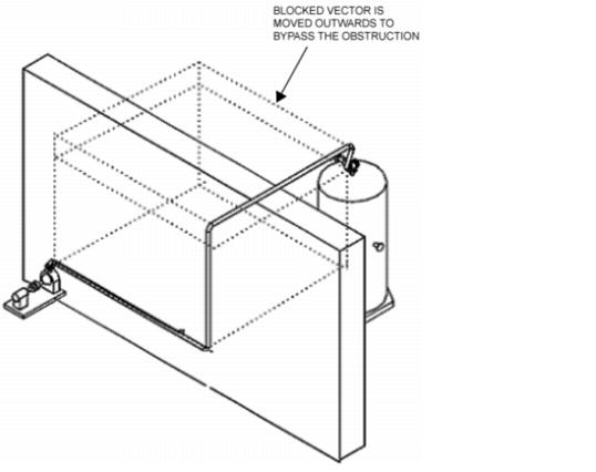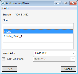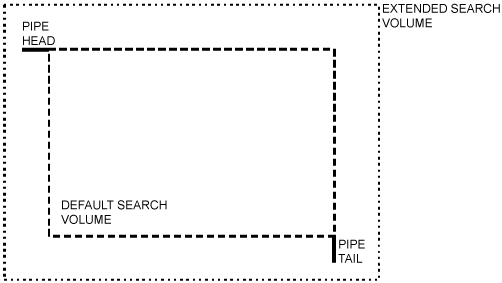 Planes are searched for in a box defined by the head and tail of the branch. The box is extended by the values specified in the Pipe Router Defaults window. Only pipes that travel along routing planes a distance greater than the
