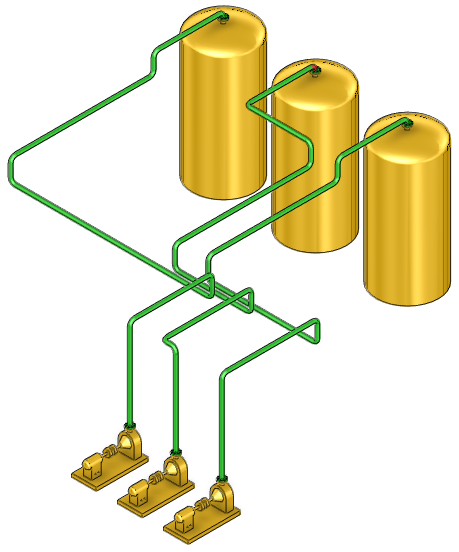 Changing the Order in which Pipes are Routed for further information. Pipe Router routes the selected pipes, adding elbows, gaskets and flanges, as required.