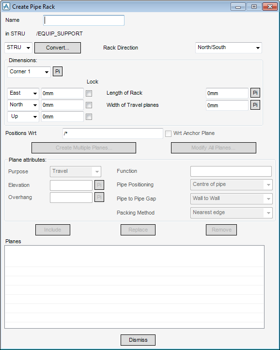 In the Name box, input a name for the pipe rack, (the name of the STRU element which owns the pipe rack elements displays under the Name).