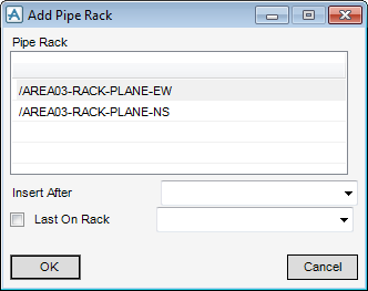 The Add Pipe Rack window contains a list of the pipe racks that are available for selection.