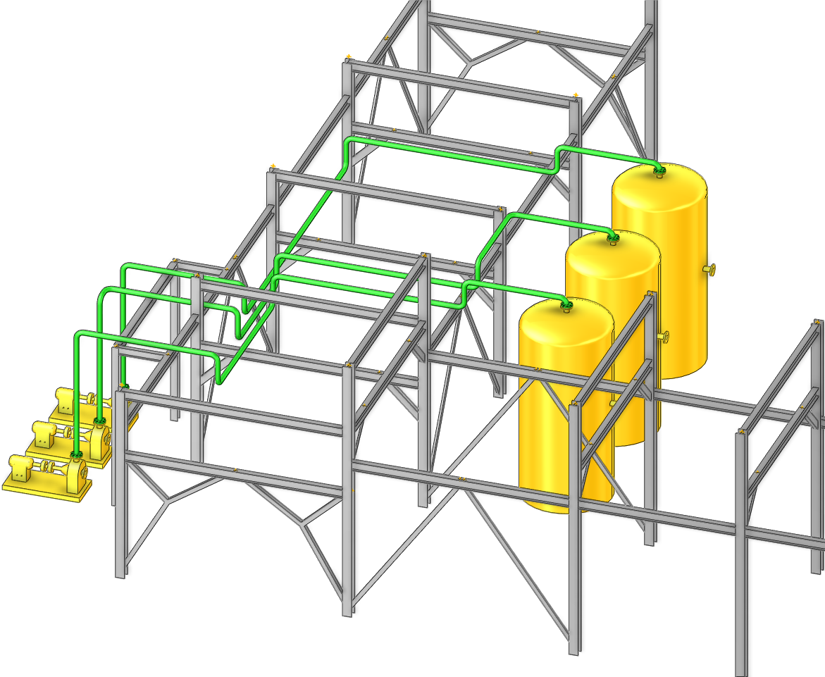 In Pipe Router, a pipe rack is composed of a group of routing planes which enables the user to model the route used on a physical pipe rack. There are two ways in which the user can create a pipe rack. The user can create pipe racks on existing steelwork structures or model them as a group of planes.