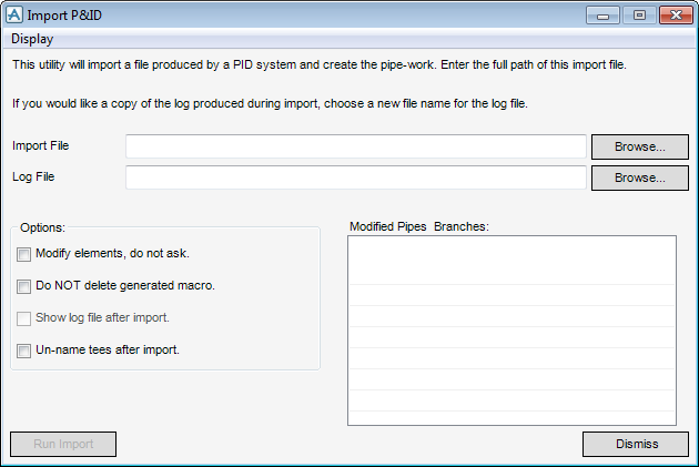 In the Import File text box, input the directory and file name of the P&ID file to load. Alternatively, click