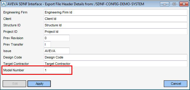 For Export, the model number that is output in the SDNF file is retrieved from the header object and can be set using the modified dialogs illustrated below.
