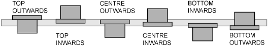 Justification of the single panel fitting. These options allows the user to specify the panel plane (top, centre or bottom) which is to be used as the alignment datum and the orientation of the fitting relative to this plane, as shown: