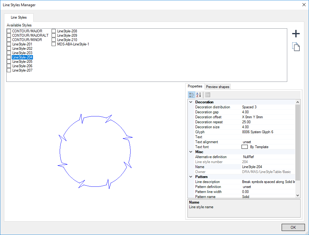 The Create Linestyle window is similar to the Hierarchy Browser window. Refer to Hierarchy Browser for further information.