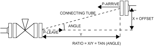 ratio of the offset to the projected distance between the arrive and leave p-points (which is equivalent to the tangent of the angle parameter). See Figure below.
