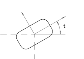A standard hole is described in a co-ordinate system of its own. It is located by specifying the position of the origin of its local co-ordinate system. Turning of the hole is done by specifying the angle to which the u-axis should be turned, see the figure below.